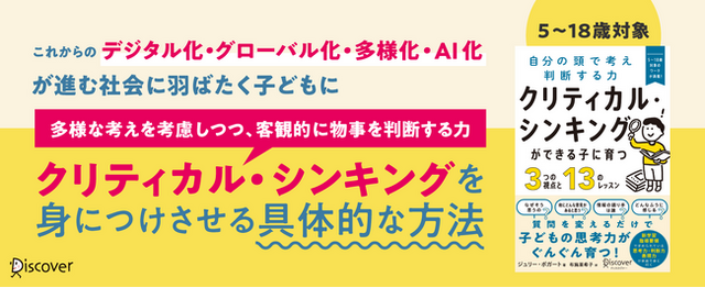 本書では、子どもへの質問の仕方を変えるだけで、5歳からでもクリティカル・シンキングを育てられる方法をお教えします。