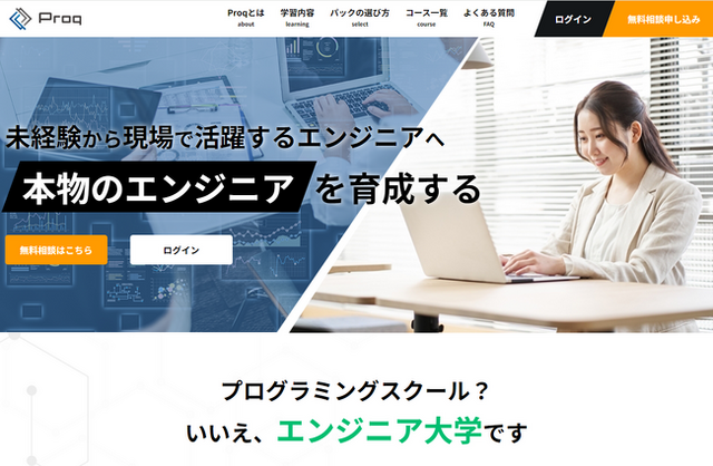 このように、高度なIT人材の育成を企業・個人ともに強くもとめているにも関わらず、なかなか上がらないIT人材の質を後押しするために、オンラインエンジニア大学「Proq」をリリースすることといたしました。エンジニアになりたいと思っている未経験者から、エンジニアとして成長していきたいと考えている人、従業員のIT能力の向上を目指す企業にむけて作成したプラットフォームとなります。
