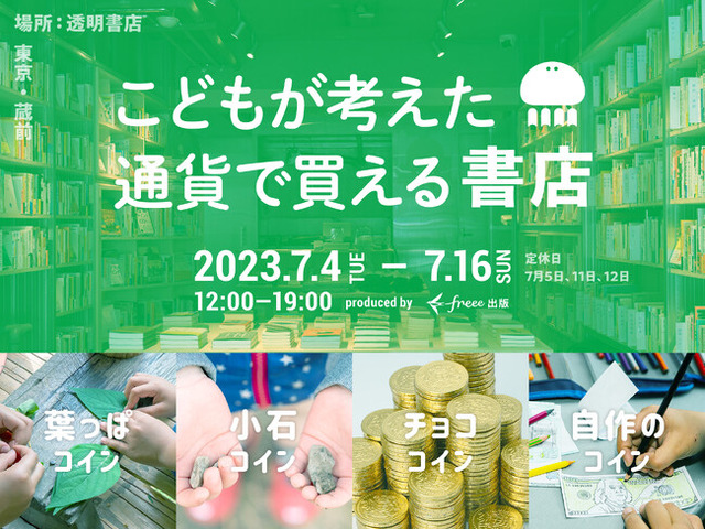 この書店は書籍「こどもの夢中を推したい」の出版記念として、実施します。東京・蔵前にある「透明書店」の一角に、ポップアップショップとして「こどもが考えた通貨で買える書店」が登場します。