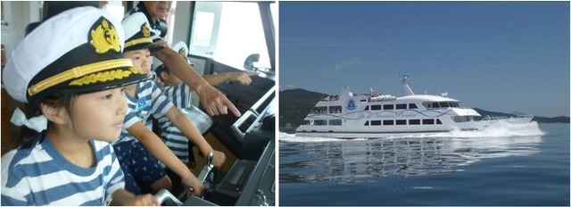 さらに弊社では、高速クルーズ船「イルドバカンスプレミア」でのオリジナルのイベントとして「小学生1日船長体験」を実施いたします。こちらは、公募により選ばれた3名の小学生が「1日船長」となって、特製ユニフォームを着て普段は入れないブリッジ(操舵室)にて、船内放送など船長の業務体験やお客様のお出迎えなどを体験できる、毎年恒例の人気企画です。