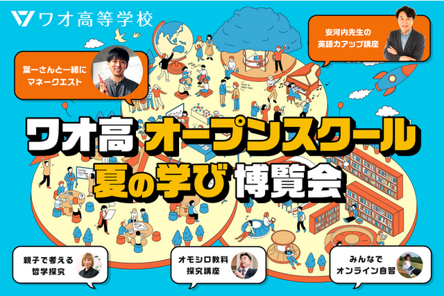 この夏、ワオ高オープンスクール「 夏の学び博覧会」を、オンラインで開催することをお知らせします。テーマは、“グローバルな教養探究”。 一度は授業を受けてみたい人気カリスマ講師をお招きして、【使える英語】 【ミライのマネー講座】の特別オンライン講座を行うほか、留学人気が再燃するこのタイミングで、高校留学 X 英検対策のセミナーも予定しています。