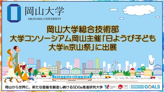 国立大学法人岡山大学(本部:岡山市北区、学長:那須保友)の本学総合技術部は、2023年6月11日に岡山県生涯学習センター(岡山市北区伊島町)で開催された大学コンソーシアム岡山主催の令和5年度「日ようび子ども大学in京山祭」に出展しました。