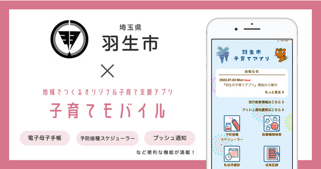 自治体向けサービスを開発する株式会社ミラボ(本社:東京都千代田区、代表取締役:谷川一也、以下「ミラボ」)の子育て支援アプリ「子育てモバイル」が、埼玉県 羽生市に導入され、「羽生市子育てアプリ」として7月3日より提供を開始します。