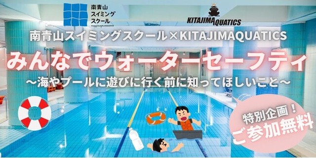 南青山スイミングスクールは、金メダリスト北島 康介氏が監修する「KITAJIMAQUATICS(キタジマアクアティクス)のオリジナルプログラムを採用し、競泳の大会経験が豊富なコーチ陣が水泳指導するスイミングスクールです。トップアスリートを中心としたコーチ陣が、どんな子どもでも楽しくレッスンができる理想的な環境づくりを行っています。本イベントでは、水辺の危険個所をクイズ形式で学ぶ座学と、もしもの時に備える実践的なレッスンを行います。より多くの子どもが夏休みに楽しく安全に水遊びを楽しめるよう、スイミングスクールの会員以外の小学生・幼児の方にもご参加いただけます。
