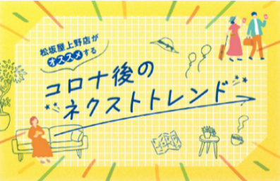 約3年続いたコロナ禍を経て、ライフスタイルや価値観にはさまざまな変化が起きました。外出自粛が求められ、おうちで過ごす時間が増えたことによって“イエナカ需要”が高まったり、キャッシュレス化が急速に進みお出かけ時の“コンパクト化”が進んだり。コロナ禍を経て定番となったものやこれから新たなトレンドになりそうなものは何なのか。松坂屋上野店で見えてきた新定番をご紹介する企画「コロナ後のネクストトレンド」を7/3(月)~25(火)に開催いたします。