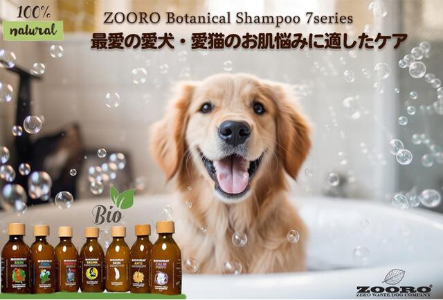 「ZOORO ゾロ ボタニカルシャンプー」は、お肌にやさしい植物由来の成分のみを使用したシャンプーです。ペットたちのお肌の悩みにフォーカスし、ケミカル成分や動物性成分を使用せず、犬猫・その他のペットたちの肌荒れを防ぎ、肌を健康にするヴィーガン・シャンプーです。