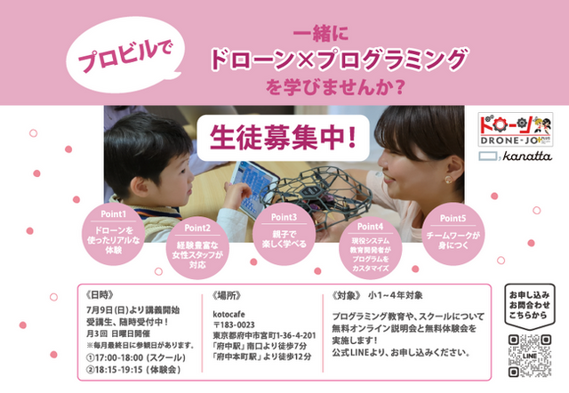 を目的に、ドローンジョプラスが「ドローン×プログラミング体験会」を開催します。