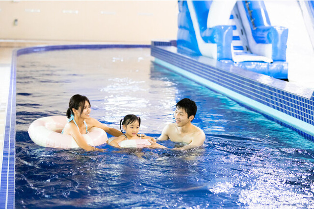 屋屋内施設でありながら窓を2面に設置しているため、開放的なつくりとなっており、箱根の自然を眺めながら流れに身をまかせてゆったりとお楽しみいただけます。同プールの中には小さなお子様向けに水深30cmのプールと高さ1mのエアスライダーをご用意。見守りスペースもご用意しておりますので、安心してご家族の皆様でご利用いただけます。