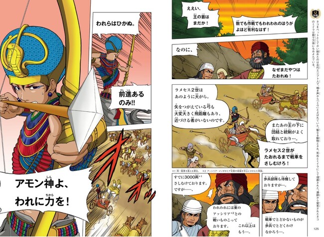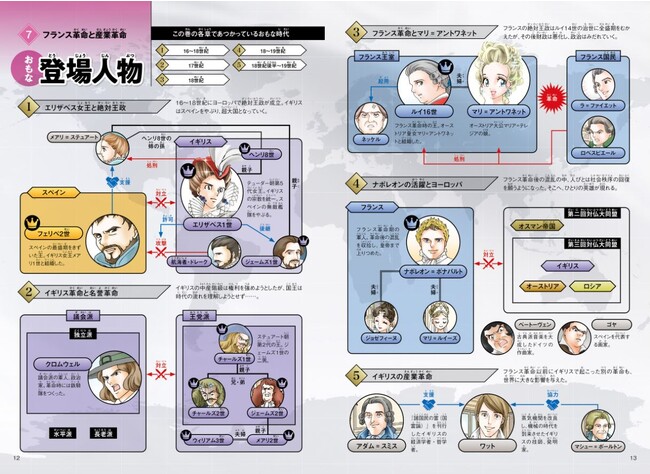 このシリーズの最大の特長は、まんがで大きな流れがつかめるとともに、まんがの背景にある世界観について、年表や図表、イラストを用いてやさしく説明している点にあります。つまり、「なぜ?」、「まんがにこめられている意味はなんだろうか?」を考えるための補助線がたくさん引かれているので、好きな巻から読み始めることもできます。まんがだけではどうしてもつながりにくいところは、解説や図表、豆知識で知識を深めていくと、まんがを楽しんでいるうちに世界の歴史が自然と身につくはずです。