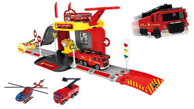 特徴:緊急事態発生!直ちに出動せよ!!工具不要で簡単に組み立てられるカーベース。1/58スケールのヘリコプターとハシゴ車でレスキューせよ!ボタンを押すと車が飛び出る仕掛け付き♪
