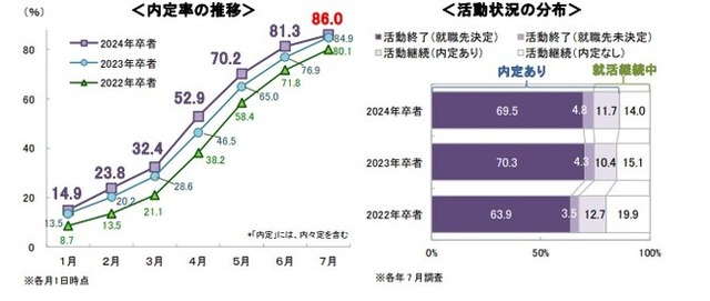 ○内定率は86.0%。前年同期実績(84.9%)を 1.1 ポイント上回る