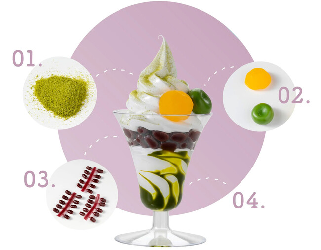 01.抹茶パウダー:チョコスプレーから抹茶のパウダーに。より抹茶を感じられるようになりました。