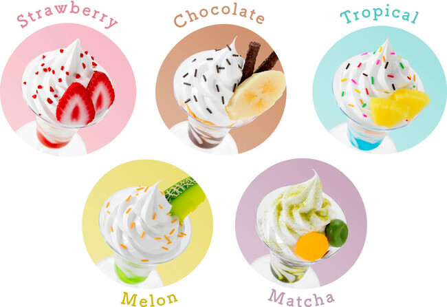 商品名:さんぷるん イチゴパフェ/チョコパフェ/トロピカルパフェ/メロンパフェ/抹茶パフェ