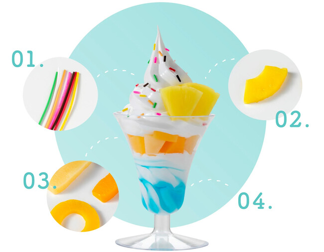 食品サンプルの街、岐阜県郡上市で2011年に生まれて以来、ロングセラーの「さんぷるん パフェシリーズ」が具材を変えて生まれ変わります。