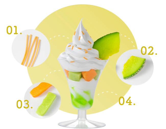 02.メロン:メロンパフェには欠かせない皮付きメロンを追加。質感にもこだわりました。