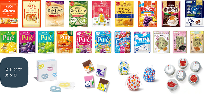 当社は1912年の創業以来、社名になっている「カンロ飴」を始め、菓子食品業界で初ののど飴となる「健康のど飴」、ミルクフレーバーキャンディ市場売上No.1ブランド※1「金のミルク」、大人向けグミの先駆けでありグミの売上トップブランド※2である「ピュレグミ」など、生活者の皆さまから愛される商品を創り続け、成長してまいりました。直営店「ヒトツブカンロ」では、「ヒトからヒトへ つながる ヒトツブ」をコンセプトにキャンディの魅力を発信しております。