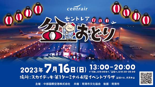 中部国際空港セントレアは、日本で一番飛行機に近いスカイデッキで、飛行機を眺めながら踊ることができる「第13回セントレア盆踊り」を7月16日(日)に開催します。