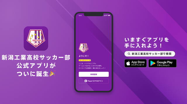 新潟工業サッカー部の発展・強化に伴って、OBと現役選手の繋がりを密にする。 OB会、父母会、後援会、支援者と心を一つにして現役チームをより強くサポート することを目的としています。 公式アプリをきっかけに新潟工業サッカー部を認知してもらい、応援してもらう情報を ここに統一することでより分かりやすい環境ができると思い導入を決定しました。