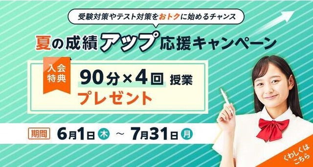 ご家庭だけではなかなか計画通りに過ごすことが難しい夏休み。明光義塾では夏休みの成績アップ応援キャンペーンを実施中!期間中にご入会いただいた方限定で、4回授業(1回あたり90分)をプレゼントいたします。
