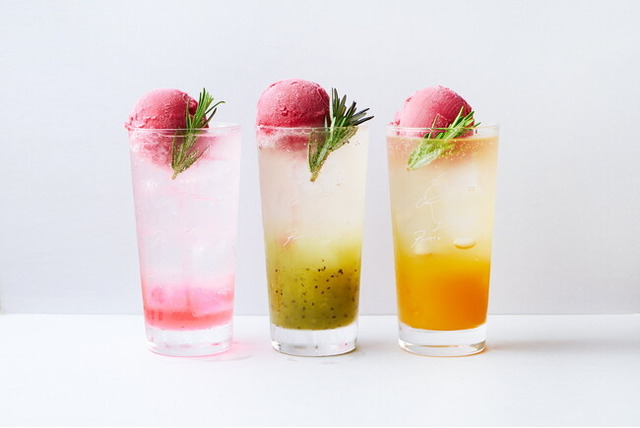 ■スパークリングカシスフロート(ローズレモネード/キウイ/マンゴー):各¥680(税込)