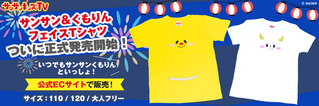 サンサンやくもりんが日常で着れちゃう!?キュートなキャラクターのお顔がプリントされたTシャツが、サンサンキッズTVの公式ECサイトで購入できます!