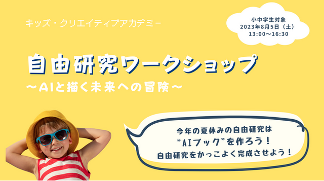 株式会社クロス・シップ(本社:東京都港区、代表取締役:野崎智成)は、2023年8月5日(土)に、小中学生向け自由研究ワークショップ「キッズ・クリエイティブアカデミー~ AIと描く未来への冒険~」を開催します。