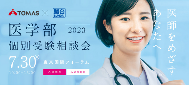 株式会社リソー教育(本社:東京都豊島区、代表取締役:天坊真彦)は7月30日(日)、医学部受験に特化した進学個別指導塾ブランド「メディックTOMAS」にて、「TOMAS×駿台 医学部個別受験相談会(会場:東京国際フォーラム)」を開催いたします。