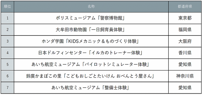 ■『じゃらん』夏休みにオススメお仕事体験ランキングトップ7