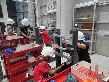 整備士として実機で点検を行いながら空を飛ぶ仕組みを学ぶプログラム。実際の工具を使って、分解・部品交換・組み立てなどの作業を体験し、整備士の仕事の重要性と仕事への理解を深められる。