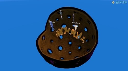 赤木研究室はメタバース上に複数の交流空間「Akagi Lab」を制作しています。アメリカの夜の町並みや宇宙空間などに近づけた空間上で、Labの参加者はそれぞれが自分でデザインしたアバターで空間に入り、歩き回ったり、空中を飛行してみたり、自由な動きで視点も変化させながら交流を楽しめます。また、作成中の「細胞空間」では、ミクロサイズになった感覚で生物の細胞内部に入り込み、細胞内部の構造を3Dで体感して学ぶこともできます。今年度からバイオや化学などの分野に取り組む生命環境化学科の1年生の必修科目「生命環境基礎」でも一部を紹介し、希望する学生には体験してもらう予定です。