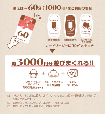 「よくばりパス」は、時間内定額で様々なゲーム機を遊びまくれる日本初のおトクなサービスです。