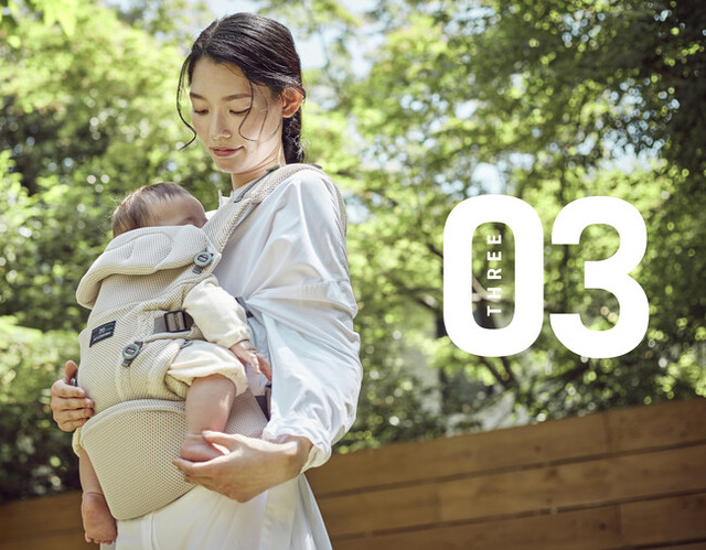 6:月齢や状況に合わせて「対面抱っこ」「前向き抱っこ」「おんぶ」の3つの使い方ができる