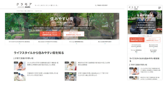 スターツコーポレーション株式会社のグループ会社である、株式会社ウィーブ(所在地:東京都中央区 代表取締役社長:若林亜樹)が運営する『クラモア』は、1都3県の子育て支援が手厚い街や物件の相場情報が閲覧できる「住みやすい街」の提供を開始しました。