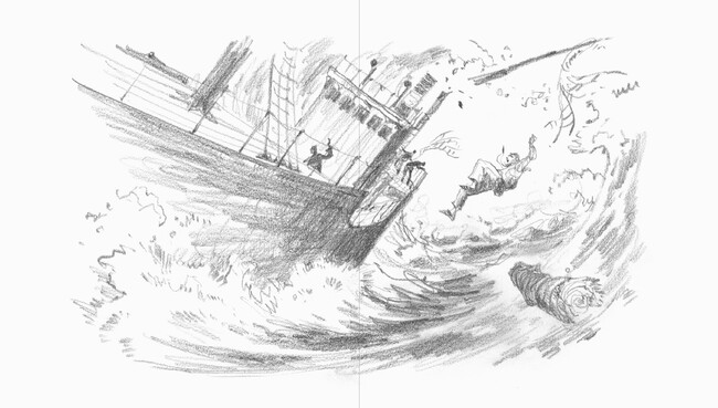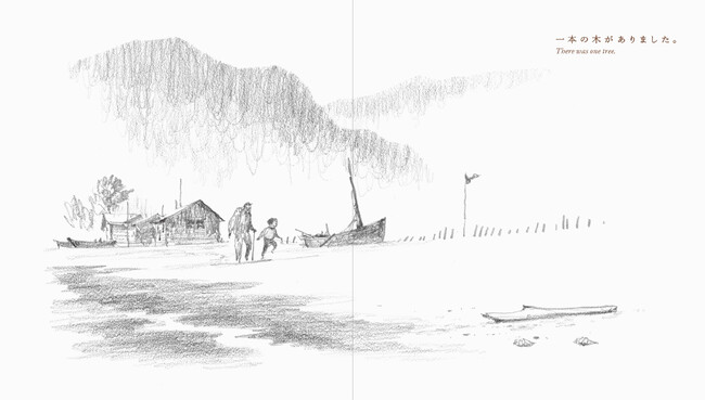 えんぴつ一本で描かれたモノクロの世界に、限りなくシンプルな言葉で綴られています。