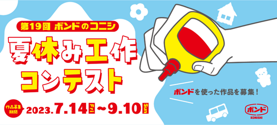 コニシ株式会社(本社:大阪府大阪市、代表取締役社長:大山 啓一)は、第19回となる工作コンテスト「ボンドのコニシ 夏休み工作コンテスト」を開催。2023年7月14日(金)より応募受付を開始いたしました。