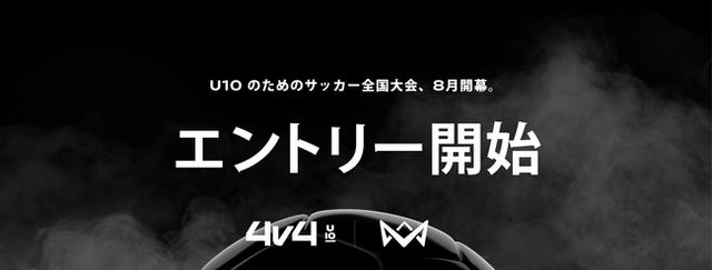 「4v4」とは日本のサッカー界をさらに盛り上げるべく、プロサッカー選手・本田圭佑がルールを考案した、4対4で行う新しいサッカー全国大会です。本大会は「サッカーの世界大会を全ての子どもに」というミッションのもと、育成年代の10歳以下の子どもを対象にした競技です。