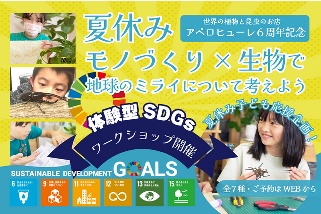 世界の植物と昆虫のお店APERO HYLE(アペロヒューレ)/ 別館BIOS(ビオス)は、『地球のミライを考える』をテーマに、SDGsワークショップ講座を開催。7/20(木)~8/31(木)には6周年イベントも同時開催いたします。