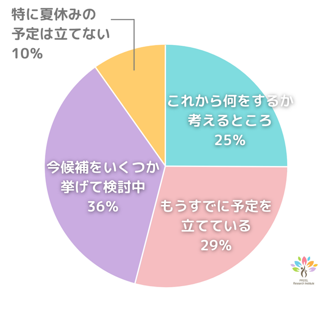 これから検討する方が25%、もうすでに予定をたてられた方、検討中の方を含めて65%と半数以上の方が夏休みの計画を立てられています。