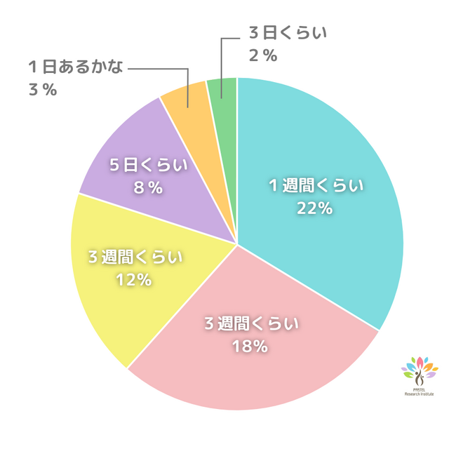 フルタイムの方は、53%が1週間ぐらい、1%が2週間ぐらい、5日ぐらいという結果でした。
