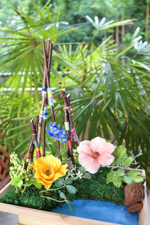 今年は、人気のグランピングをテーマに、好きなお花や枝などを組み合わせ、世界にひとつだけの「グランピングフラワー」を作ります。当日はベル・フルールフラワーデザインスクールの講師が丁寧にレクチャーし、ひとつの作品を仕上げるため、初めての子供でも安心して参加が可能です。