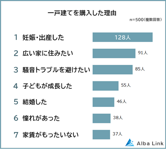 株式会社AlbaLink(本社:東京都江東区、代表取締役:河田 憲二)は、一戸建ての購入経験がある500人を対象に「一戸建てを購入して良かったことに関する意識調査」を実施し、そのデータをランキングにしました。