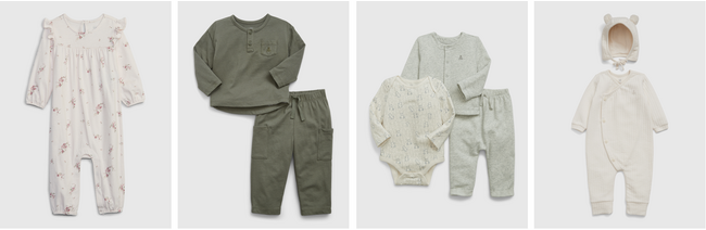 本コレクションは、50cm~90cmまでの新生児やベビー向けのアイテムを揃え、生まれたばかりの赤ちゃんも安心して着られるオーガニックコットンなどの素材にこだわった、ボディスーツやアウトフィットセットなどのアイテムを展開します。デザインには、babyGapのオリジナルキャラクターとして長年愛されているBrannan Bear (ブラナンベア)が施されていたり、シーズンごとにカラーやデザインがリフレッシュされ、babyGapを代表とする人気コレクションです