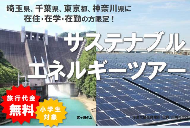 九都県市では、九都県市域の住民の皆様の脱炭素の自分事化を図ることを目的に、小学生とその保護者を対象としたサステナブルエネルギーツアーを実施します。