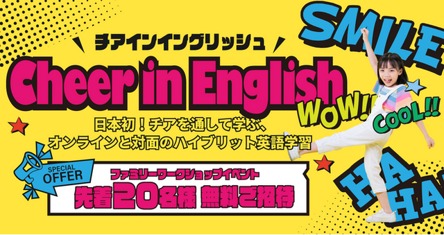 Cheer in English( https://cheerinenglish.com/ )は、チアを通してオンラインと対面のハイブリッドで英語を学習するプログラムです。