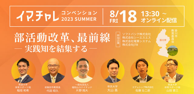 イマチャレ製作委員会(主管企業・団体:エデュシップ株式会社、筑波大学体育スポーツ局、読売新聞東京本社)は、部活動を中心とした学校スポーツ改革をテーマとした「イマチャレコンベンション2023SUMMER」を8月18日(金)13時30分からオンライン・無料にて配信いたします。