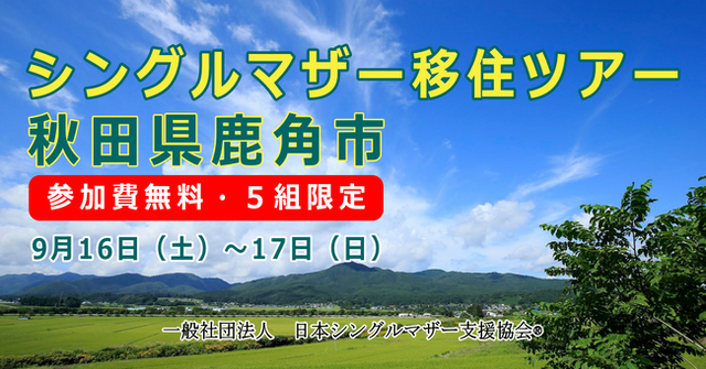一般社団法人日本シングルマザー支援協会(本社:神奈川県横浜市、代表理事:江成 道子、以下「日本シングルマザー支援協会」)は秋田県鹿角市(鹿角市役所:秋田県鹿角市花輪字荒田4番地1 市長:関厚 )の委託を受けて、シングルマザーのための秋冬移住ツアーを開催いたします。