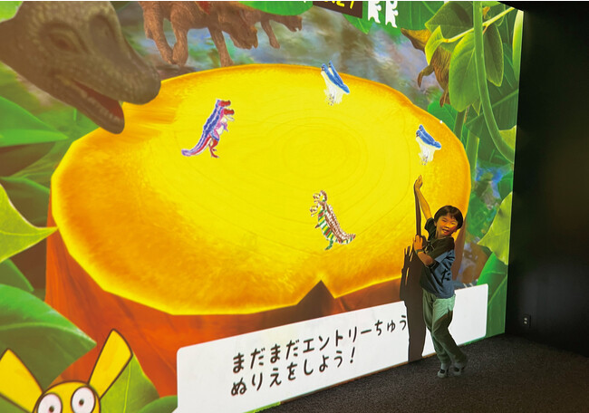 このほかにも、ハラハラドキドキの冒険が楽しめる新感覚ボールプール「ZABOOM JOURNEY」の中に「SKETCH RACING」や「PAPER RIKISHI」で描いた恐竜のぬりえがアトラクションを横断して登場したり、デジタル算数パズル「NUMBER SPLASH」で5種類の恐竜がランダムに現れたりと、パークのあらゆる場所で“恐竜×デジタルアトラクション”のコラボをお楽しみいただけます。