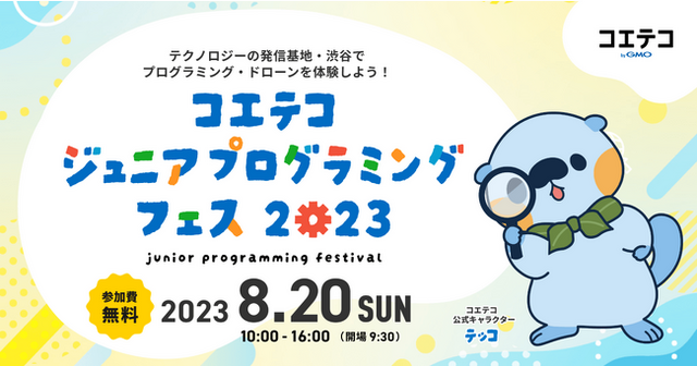 GMOインターネットグループのGMOメディア株式会社(代表取締役社長:森 輝幸 以下、GMOメディア)が運営する、プログラミング教育ポータルサイト「コエテコ byGMO」(URL:https://coeteco.jp/)は、小学生を対象とした、見て、触れて、学べる体験型イベント『コエテコ ジュニアプログラミングフェス in 渋谷』を、2023年8月20日(日)に開催いたします。