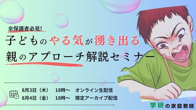 本セミナーでは「どうやってお子様のやる気を引き出すか?」を保護者様向けに解説させていただきます!