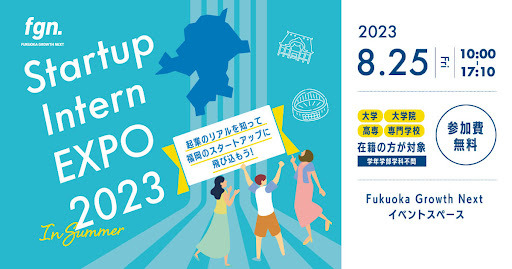福岡市の官民共働型スタートアップ支援施設「Fukuoka Growth Next」(所在地:福岡県福岡市、以下FGN)は、スタートアップでのインターンを希望する学生を対象としたプログラム「FGN Startup Intern EXPO 2023 in Summer」を8月25日(金)に開催いたします。本プログラムではベンチャーキャピタルによるスタートアップとはどんな企業なのかを知るためのレクチャーや新たな事業を作り出すプロセスを体験できるワークショップ、そして学生インターンを募集しているFGNスタートアップによる事業紹介やランチ交流会を実施し、スタートアップに関心のある学生とのマッチングを実施します。